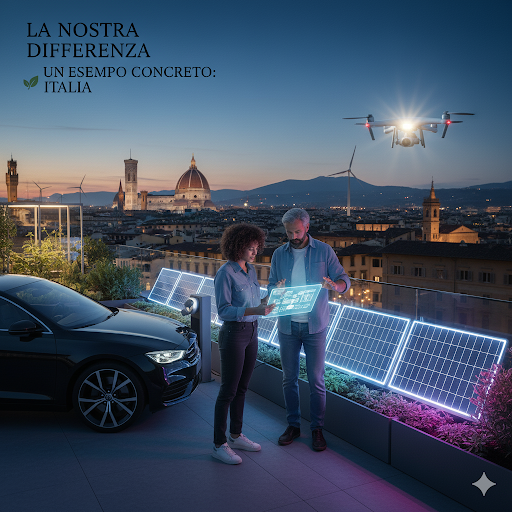 Soluzioni Sostenibili e Personalizzate: Non ci limitiamo a vendere pannelli solari. Il nostro lavoro consiste nell'analizzare a fondo le esigenze di ogni cliente per proporre soluzioni su misura che massimizzino i benefici ambientali ed economici. Ciò significa valutare l'orientamento dell'edificio, i consumi energetici e le abitudini familiari per garantire che ogni kWh prodotto sia pulito e che ogni intervento di efficienza energetica riduca realmente l'impronta carbonica.
